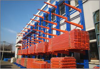 倉庫存放長料型管件,雙邊存放,從上到下懸臂長度依次加長,方便存取。