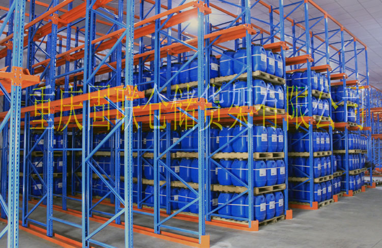某食品公司重型立體貫通式貨架,排放整齊,外形美觀,大大提高了庫存能力,提高汽車工廠的6S管理。