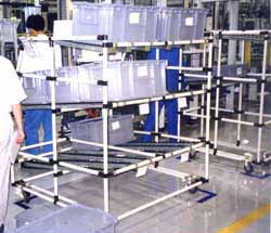 某汽車配件公司裝配線解決方案之--線棒貨架,四層,每條設置多條滑道,揀選方便快捷,提高了工作效率。